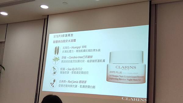 講師說明了CLARINS克蘭詩領先業界,發現了黑色素過量生成之關鍵─黑色素信差