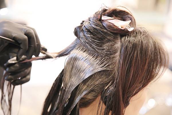 等設計師 Johnson 調配好染髮劑後,就要開始上色囉...