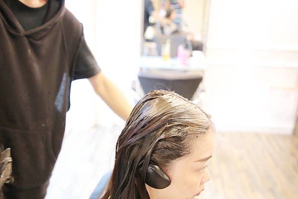 先與設計師 Johnson 討論好想要的髮型和髮色的想法後,第一個步驟就是先上頭皮隔離囉!
